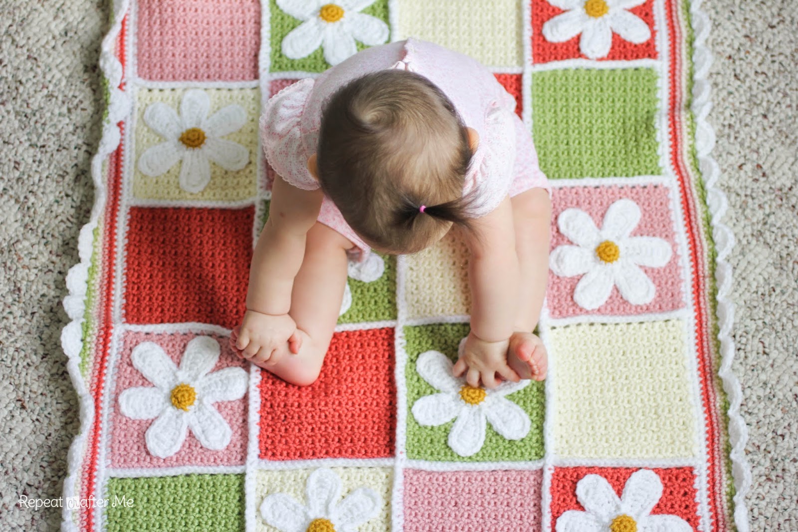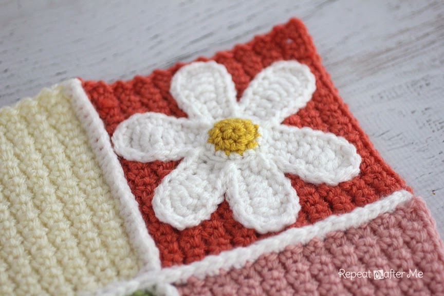 Теперь мы готовы пришить цветы ромашки. Или любые другие вязаные аппликации.