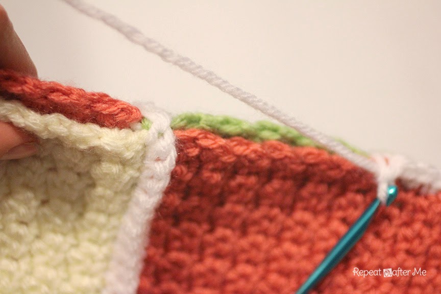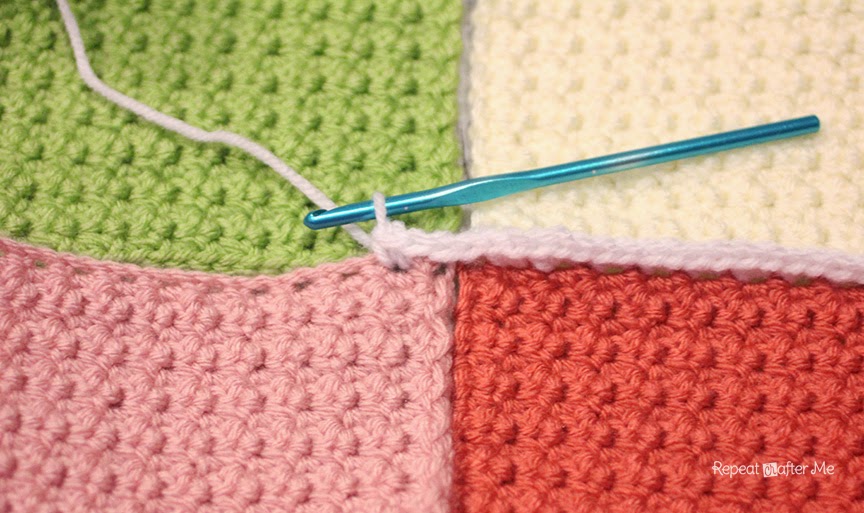 Когда вы дойдете до конца ряда, держите следующие два квадрата вместе и продолжайте соединять.