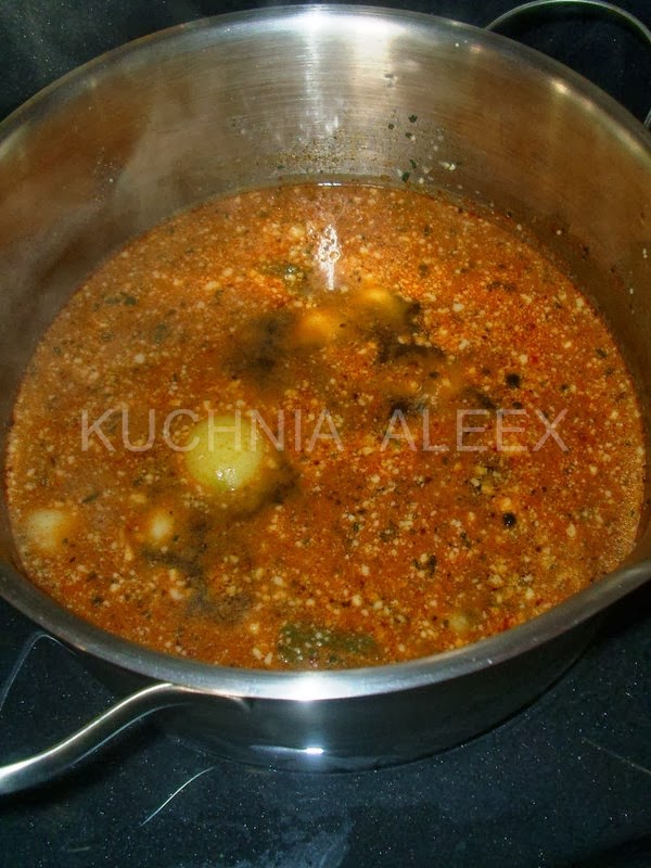 • специи: лавровый лист, душистый перец 3-4 гор, петрушки или любистка, сладкий перец, перец чили (щепотка), Knorr для мяса или другие любимые специи