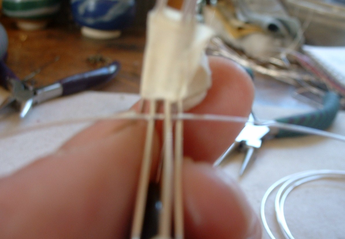 6. С помощью кончика носа круглые плоскогубцы сделать крошечный цикл вниз в конце каждого из 4 хвостами.