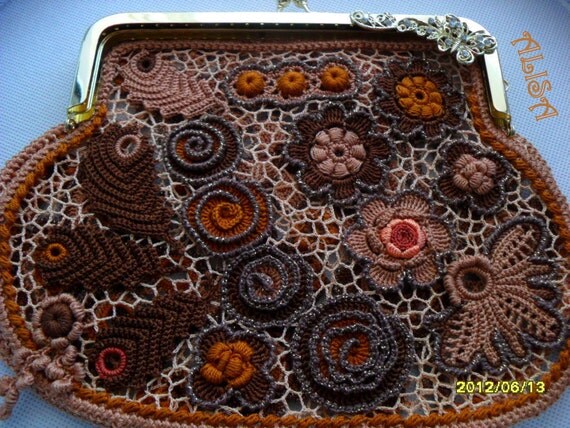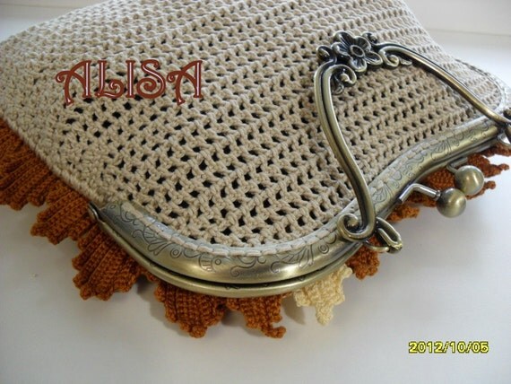 Сумка "Осенний клен" связана из хлопковой пряжи,на фермуаре под бронзу
