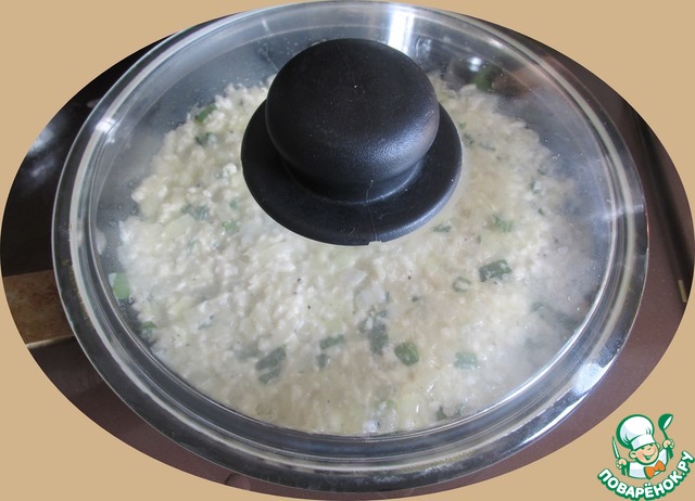 Убавляем огонь до малого, накрываем сковороду крышкой и жарим пирог минут 10.