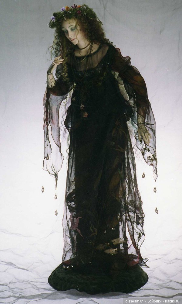 Размеры кукол — около 60 см. Одежда шьется как для настоящих людей и используются дорогие материалы — органза, жатая вручную, антикварный бисер, натуральные шелк, мохер, атлас и т.д. Очень много ручной работы, в том числе росписи по ткани на одеждах кукол.