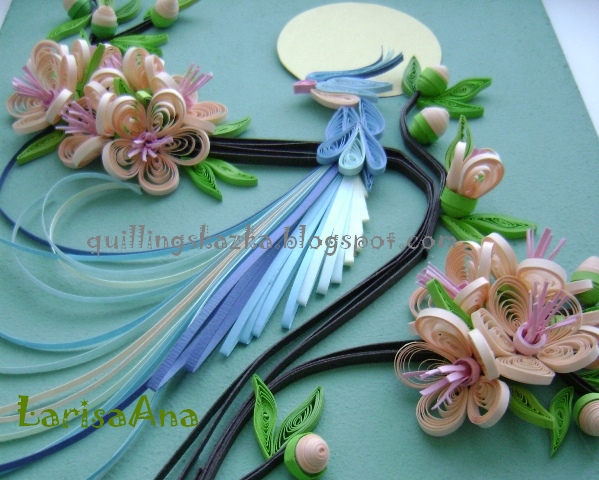 Теперь у меня есть райская птичка!!!!!! Нравится мне совмещать в композиции разные квиллинговые техники....