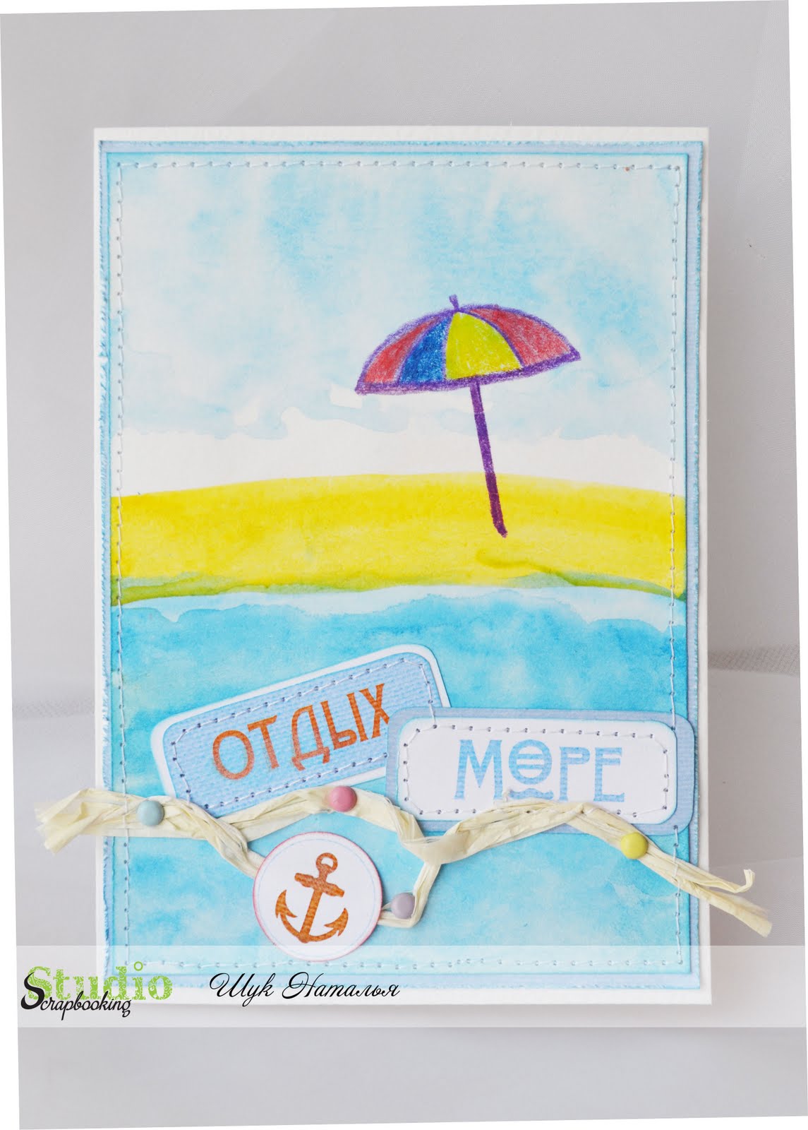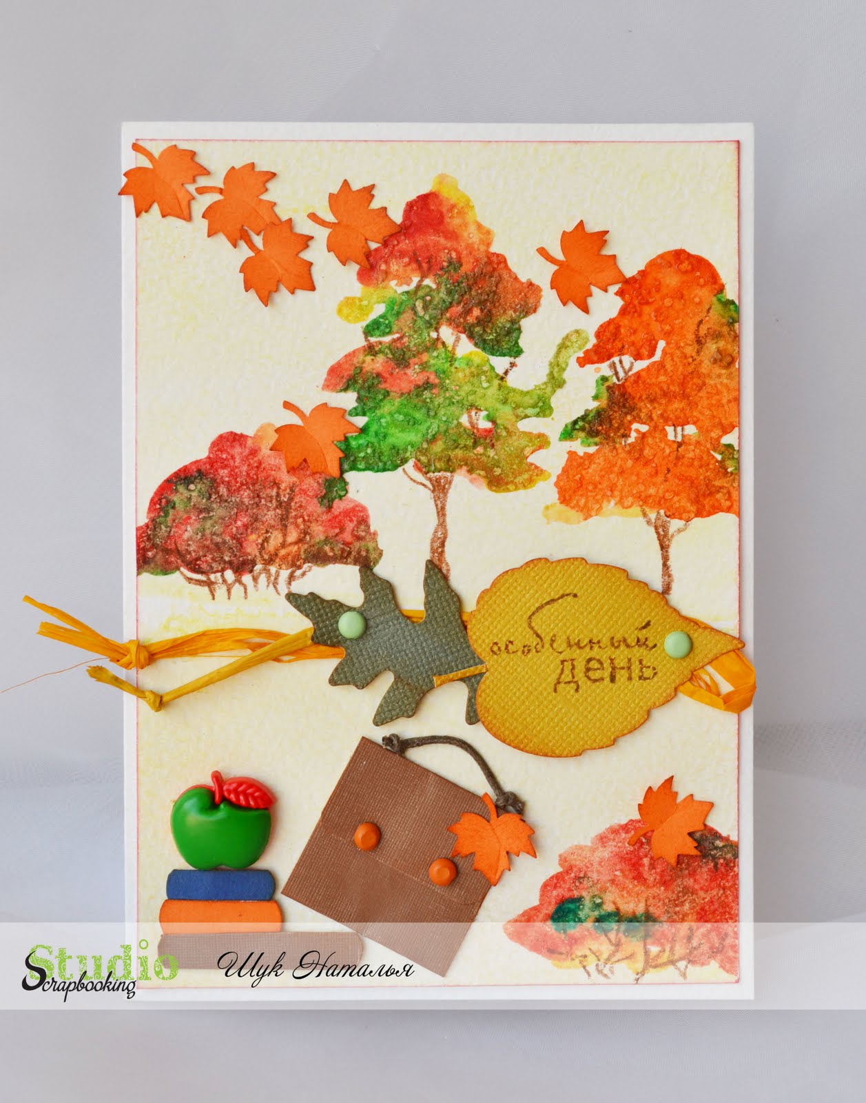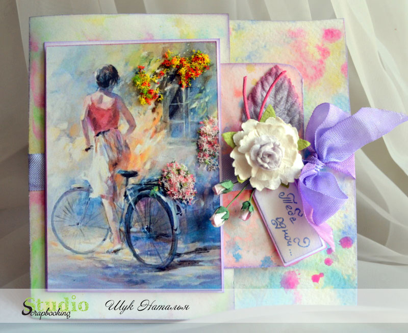 Из окрашенной таким способом бумаги вырезан фон открытки.