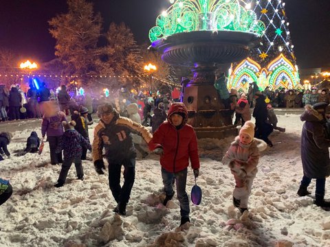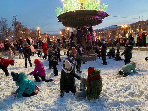 Детки играют в снежки прямо в чаше фонтана. ![]() |