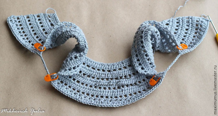 2 ряд. Вяжем только вырез на спинке. Узор-рачий шаг.