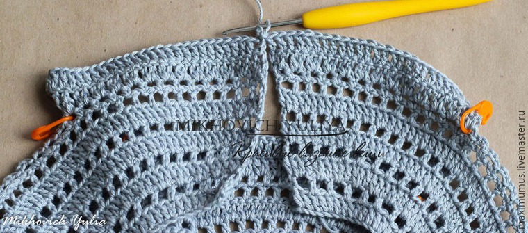 2. Разделяем работу для вязания спинки, пройм и полочки.