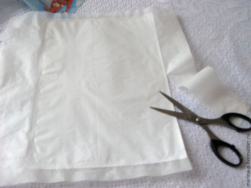 Дальше нужно расслоить салфетку, взять самый нижний слой, который самый чистый без следов краски, на промежуточном слое, как правило, отпечатывается рисунок, и он не годится.
