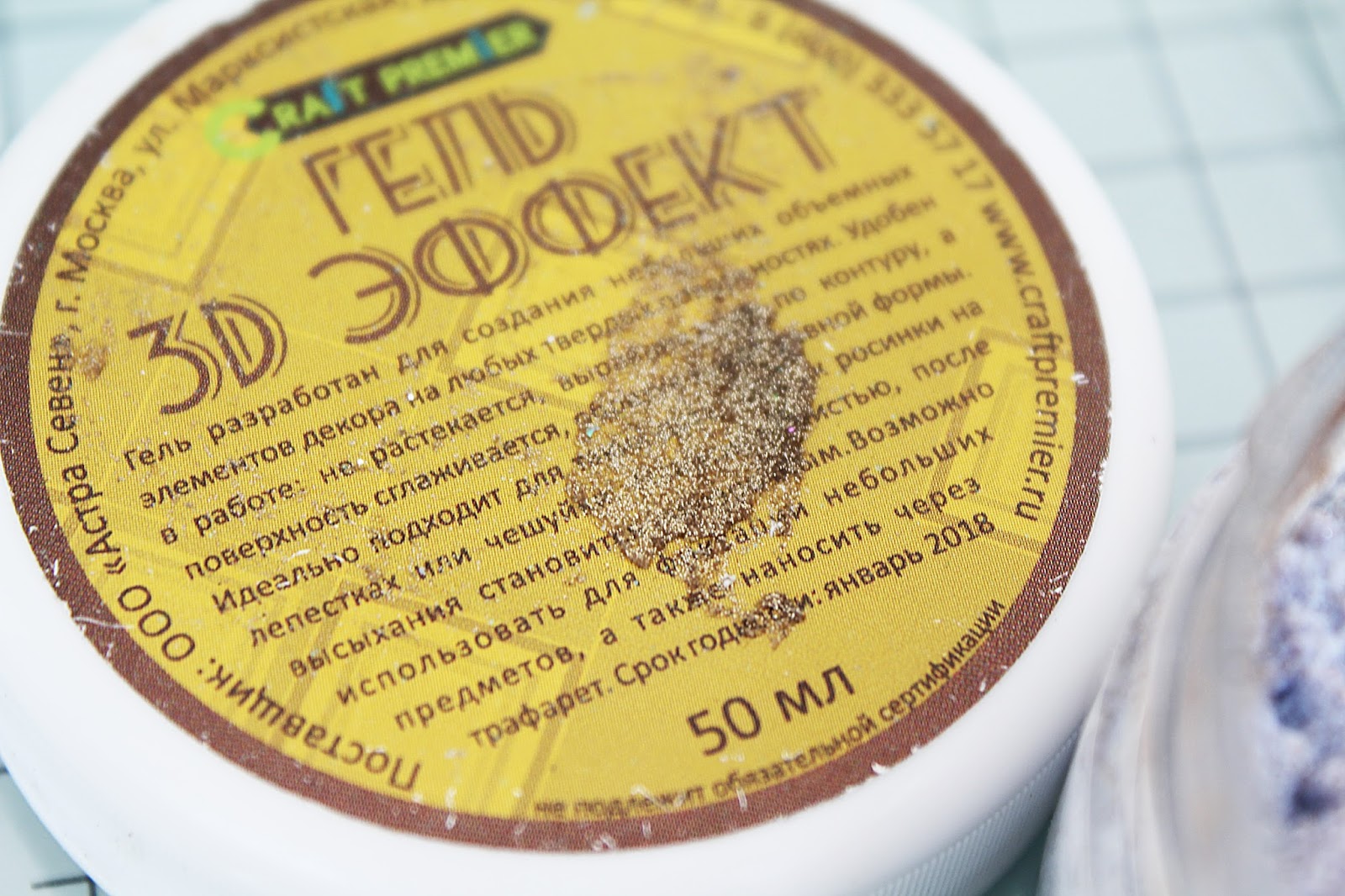 3D гель "Золото", после высыхания все белое становится прозрачным и частички играют.