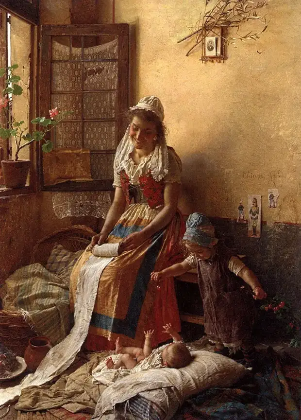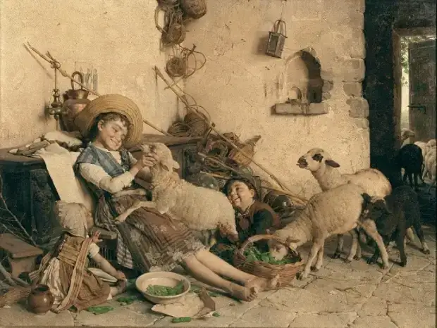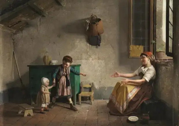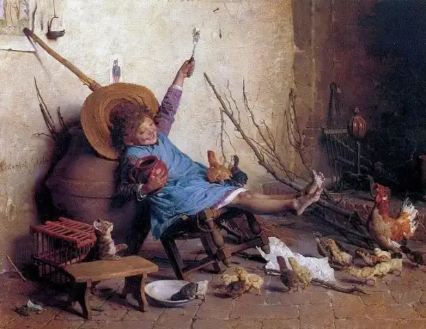 Художник также любил наблюдать за детьми, за их повадками, играми и трудом, к которому маленьких жителей приучали с раннего детства. И всё что Гаэтано Чиерици видел, он с трепетом и нежностью передавал на своих картинах.