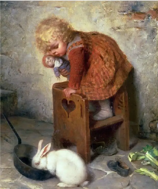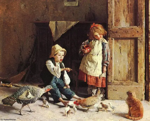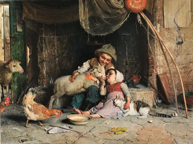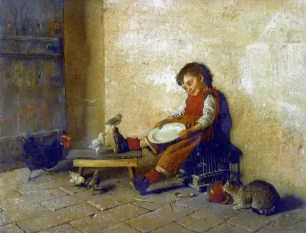 Гаэтано Чиерици — Ребенок кормит своих домашних животных, 1872