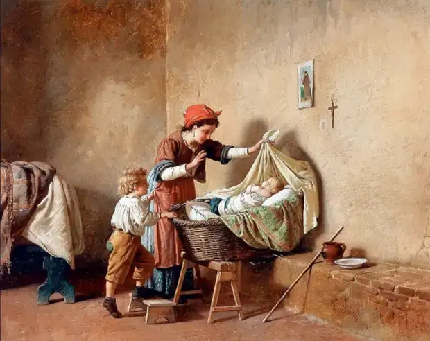 Гаэтано Чиерици (Gaetano Chierici), una scena domestica, primi passi, 1865