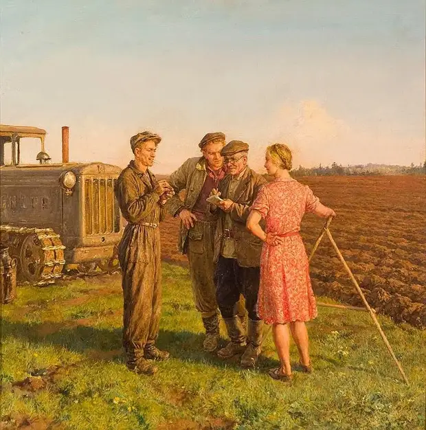 К моему огромному сожалению работы художника, как одного из приверженцев соцреализма, сейчас «не в почёте» и в интернете невозможно найти репродукции работ художника достойного качества. Впрочем, это забвение характерно для всего периода советской живописи в частности, и советской культуры вообще.