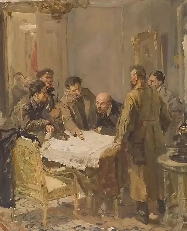 Нужно сказать, что художник ещё в студенческие годы избрал для себя монументальную историческую живопись, а революция и люди революции стали излюбленными объектами творчества Серова. Всю свою жизнь Владимир Александрович будет писать Ленина. Это не конъектурный интерес – а глубокое желание понять масштаб личности вождя революции, личность человека и её влияние на историю.