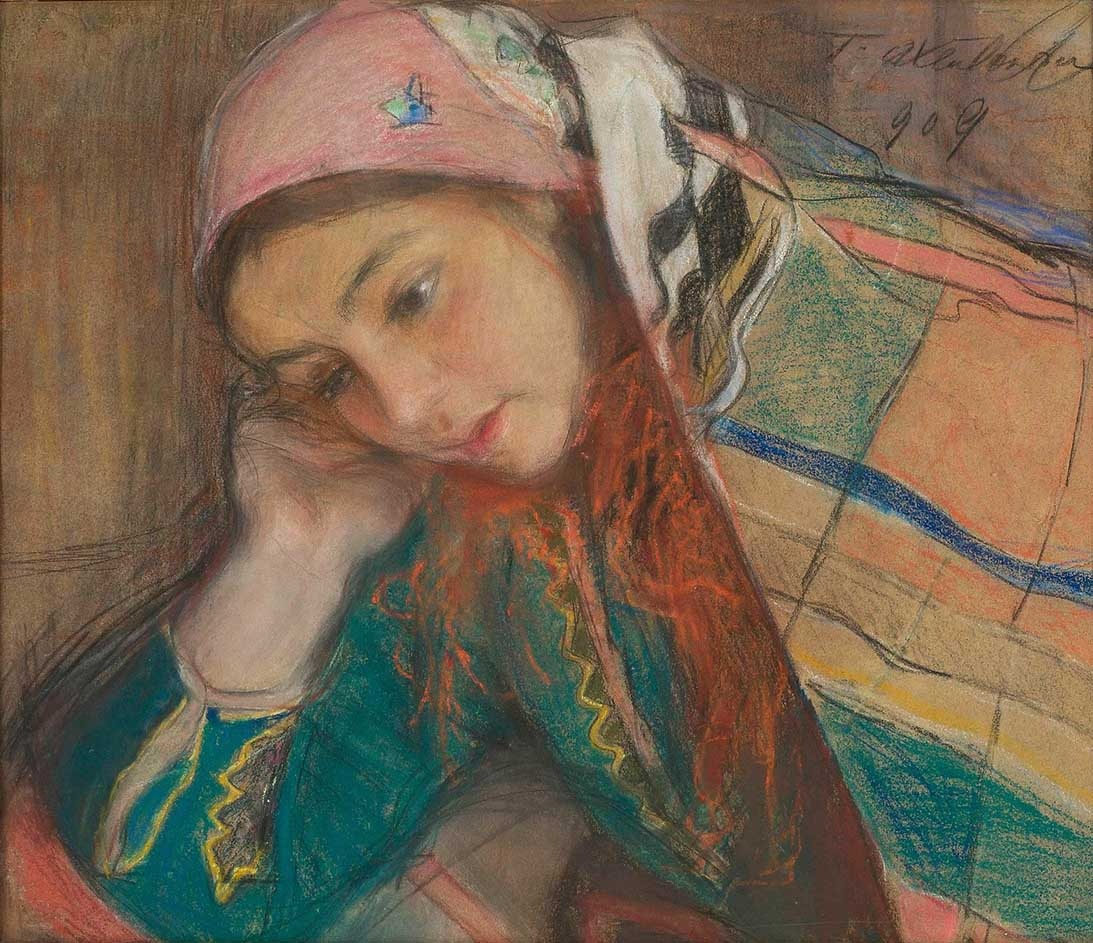 Следующая работа представляет образ Аты Закшевской, вдохновительницы художника из Кракова, чей облик запечатлен во многих его произведениях.