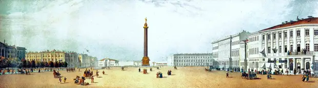 Дворцовая площадь, 1830-е годы. Художник Садовников В.С. Акварель. Государственный Эрмитаж. Крайний справа — Дом Вольного экономического общества, Невский пр-т, д. 2.