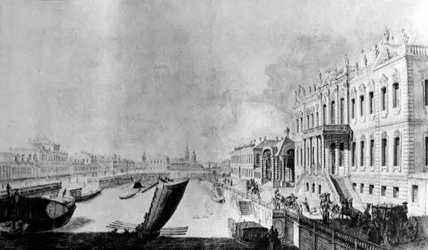 Проспект вверх по Мойке речке от двора Его Сиятельства графа Петра Ивановича Шувалова. 1757—1759 г.