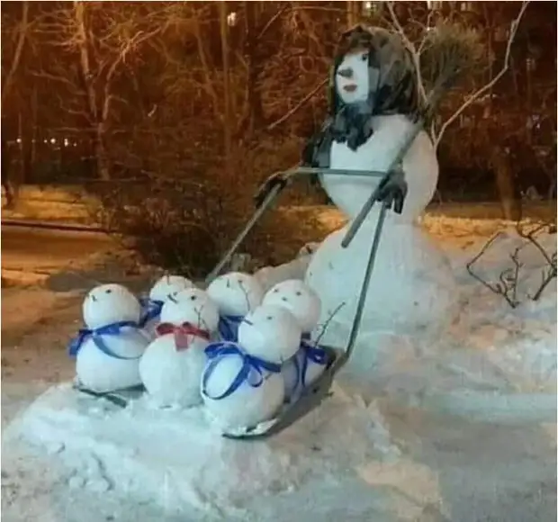Лепили не снеговиков у нас, а снежных баб. И не только дети, но и взрослые. И обязательно три!