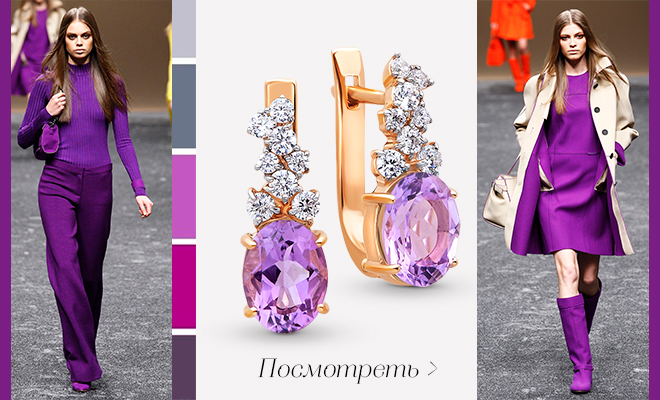 Прохладный аметистовый бурно взрывается в сочетании с жёлтым и становится практически ручным в тандеме с нейтральными тонами. Водолазка, платье и серьги приятного виноградного оттенка – абсолютный must have осени 19, на 100% обязательный к дегустации. |