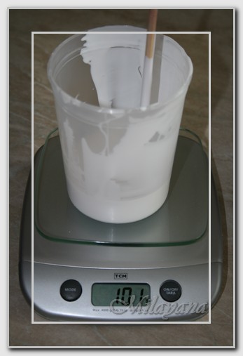 Я использовала 100 гр. основы и 3 мл. катализатора. Смешиваем.