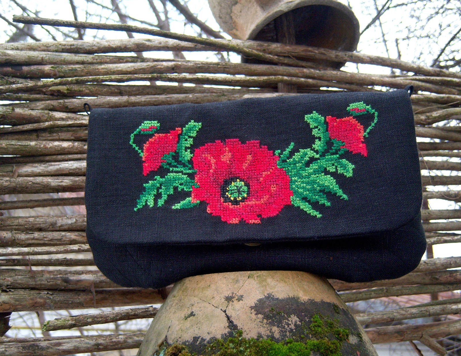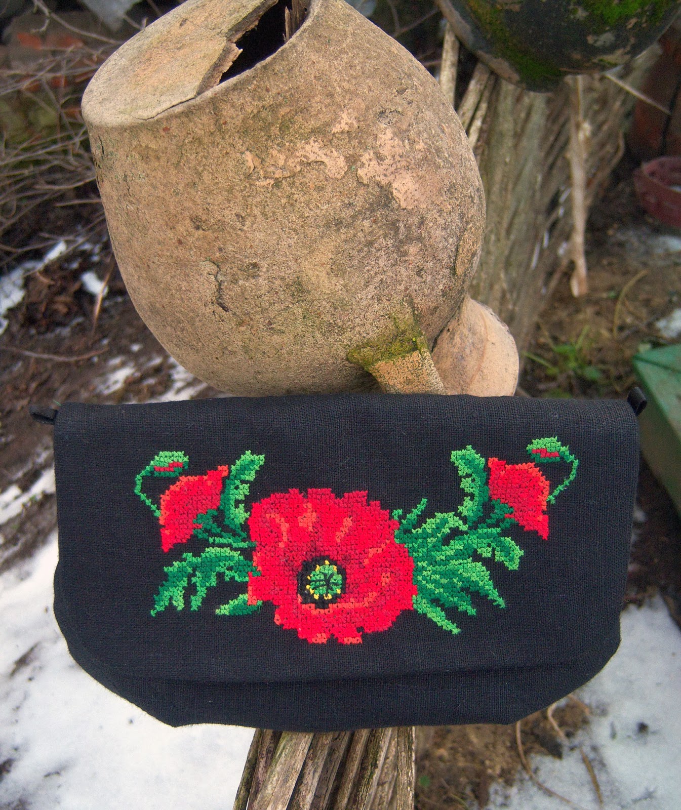 Наступний клатч - лляний з маками (під чорну вишиту сукню)