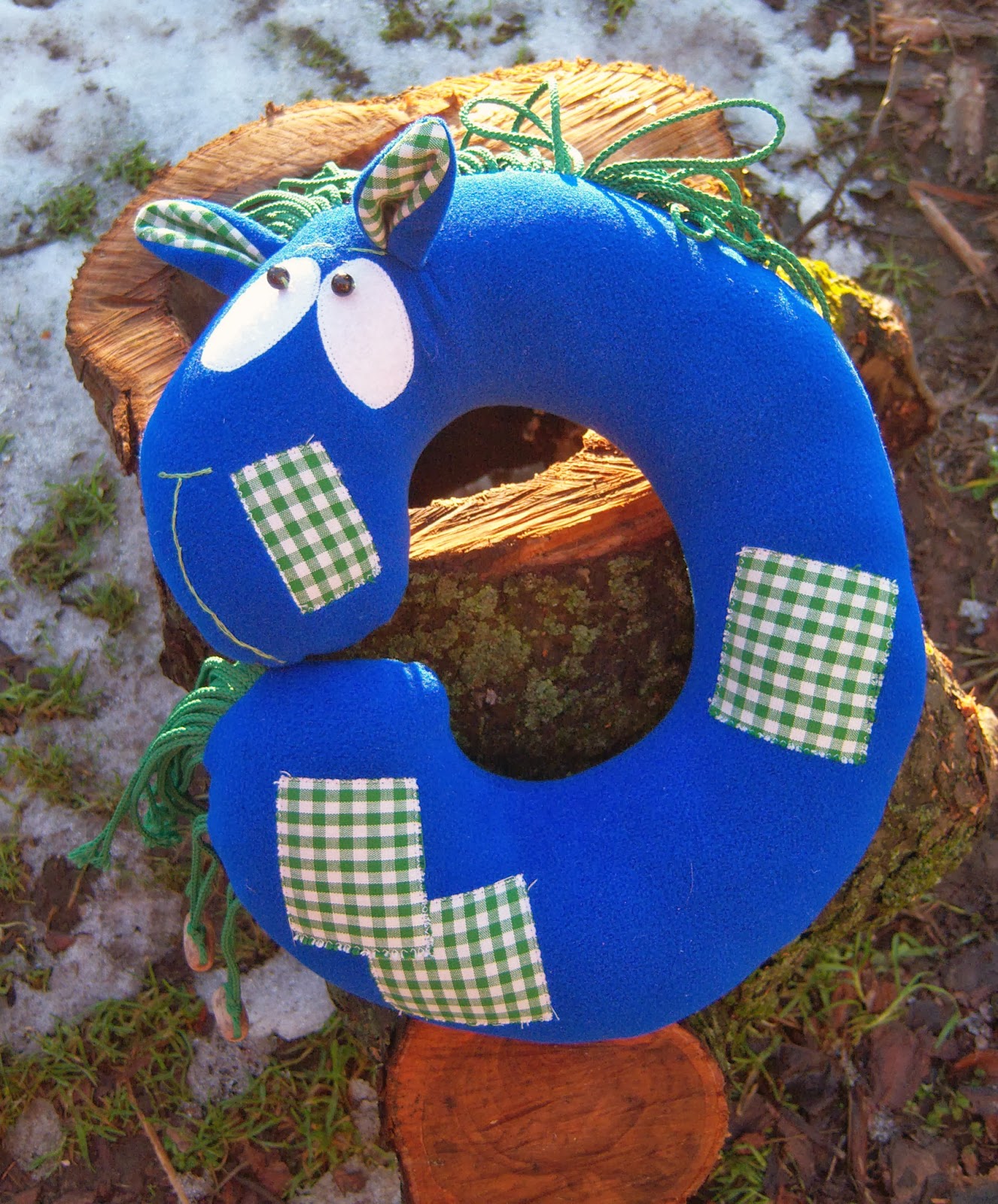 Ось дві з них - подушки в дорогу. Перша - Синьо-зелена конячка (я ж обіцяла, що буде :-)).
