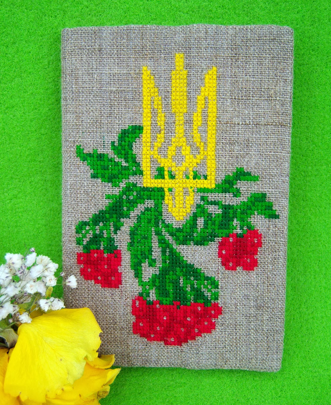 А оскільки замовниця захотіла ще й собі обкладинку просто з українськими символами, то намалювалась в мене калина ще й з гербом