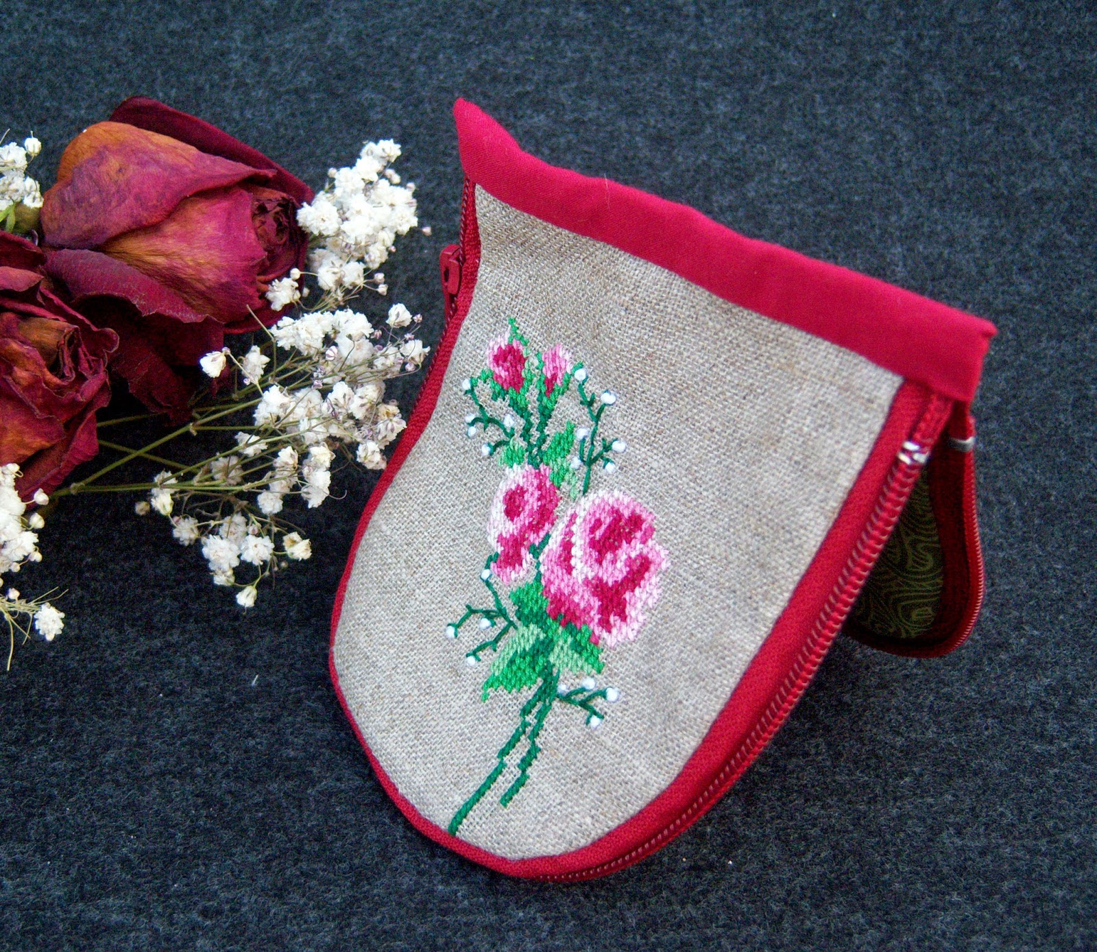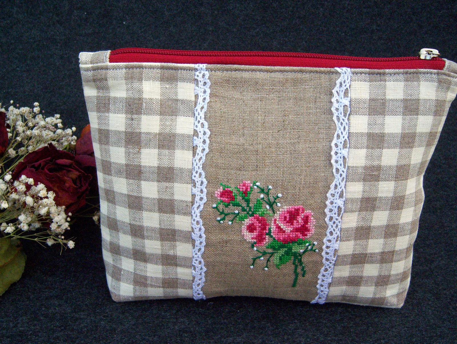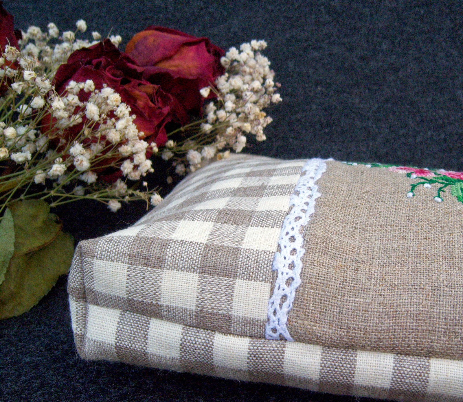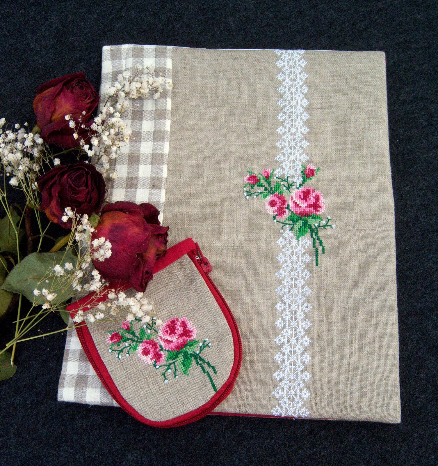 Між іншим, на папці - вишита імітація мережива, а на косметичці - вже справжнє лляне мереживо в швах :-))