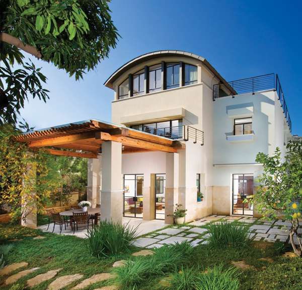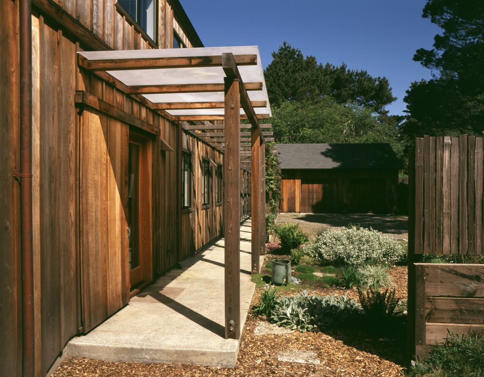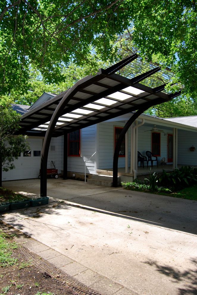 Навес из поликарбоната, пристроенный к дому, не только спасет вас от дождя, но и станет украшением экстерьера