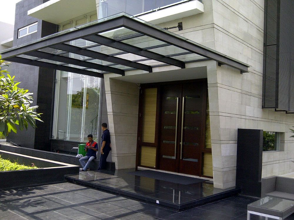 Навес из поликарбоната, пристроенный к дому: украшение парадного входа
