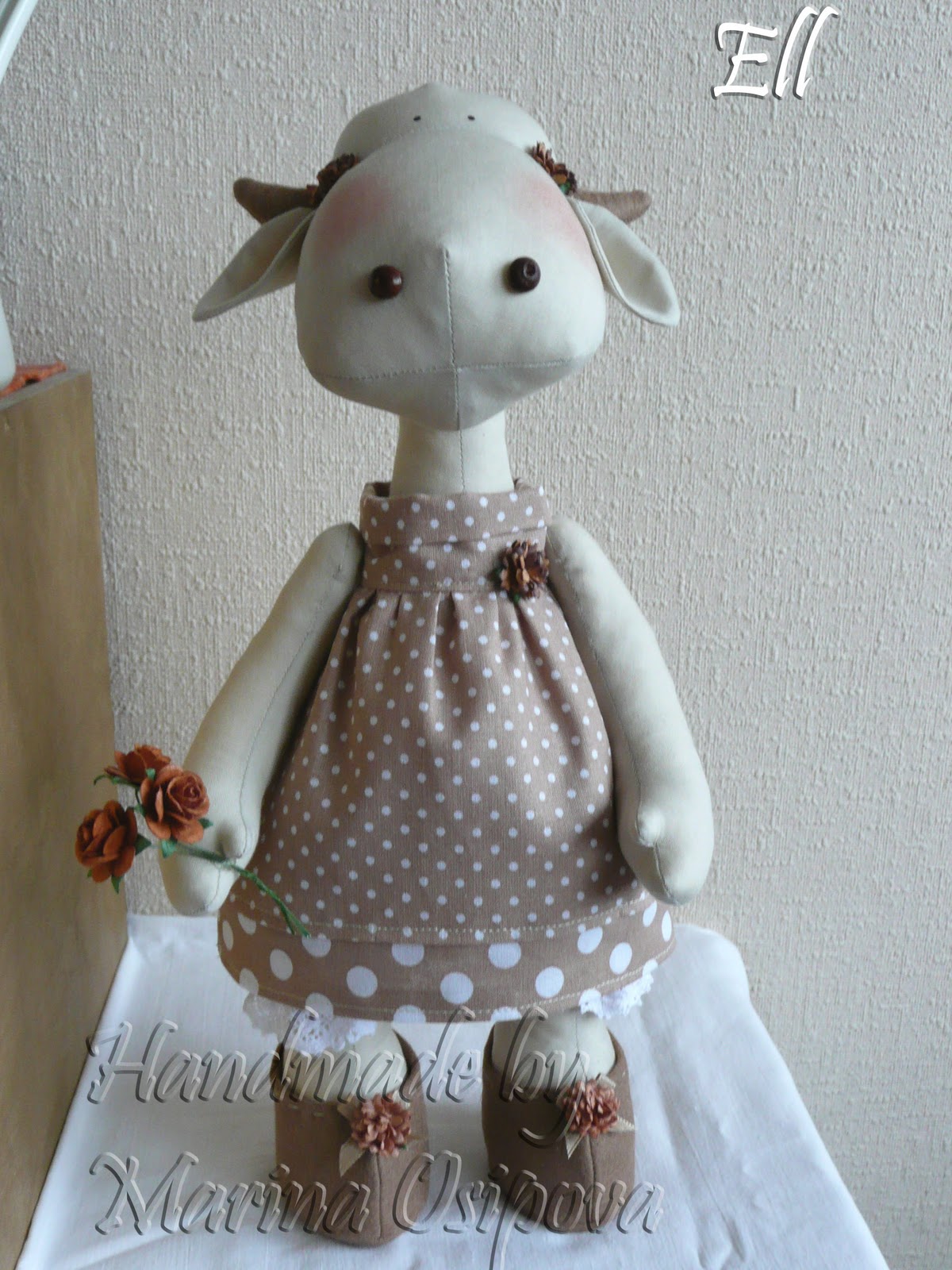 Текстильная игрушка, наполнитель холофайбер. Пуговицы. Акриловые краски для ткани. (часть пятнышек -нарисованные ). Бубенчики.