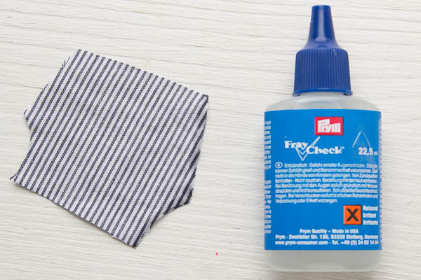 Это единственное средство подобного типа что мне удалось купить, наверно есть и другие, если кто знает поделитесь информацией . Можно заменить клеем ПВА, разбавленным водой, но это средство мне нравится больше, ткань после него не дубеет, хотя жесткости оно немного придает. Я считаю этот этап обязательным, иначе будет очень трудно шить маленькие детали и из-за осыпания размеры деталей могут измениться, для миниатюры нужна точность до миллиметра.