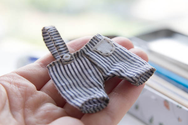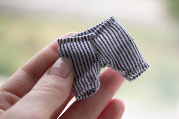 Для таких маленьких игрушек чем проще выкройка тем лучше, нам не нужны множество швов, поэтому будем шить самые простые штанишки, состоящие из 2-х штанин, без застежек на лямочке. Я обычно стараюсь шить одежду для маленьких игрушек свободной посадки, чтобы она не сковывала движений и хорошо смотрелась когда мишка принимает разные позы.