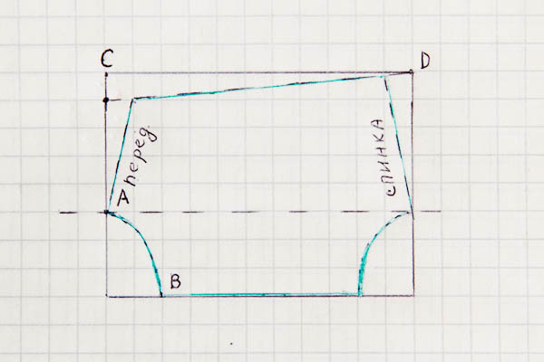 Для начала рисуем прямоугольник, на его основе мы получим выкройку одной половины штанишек.