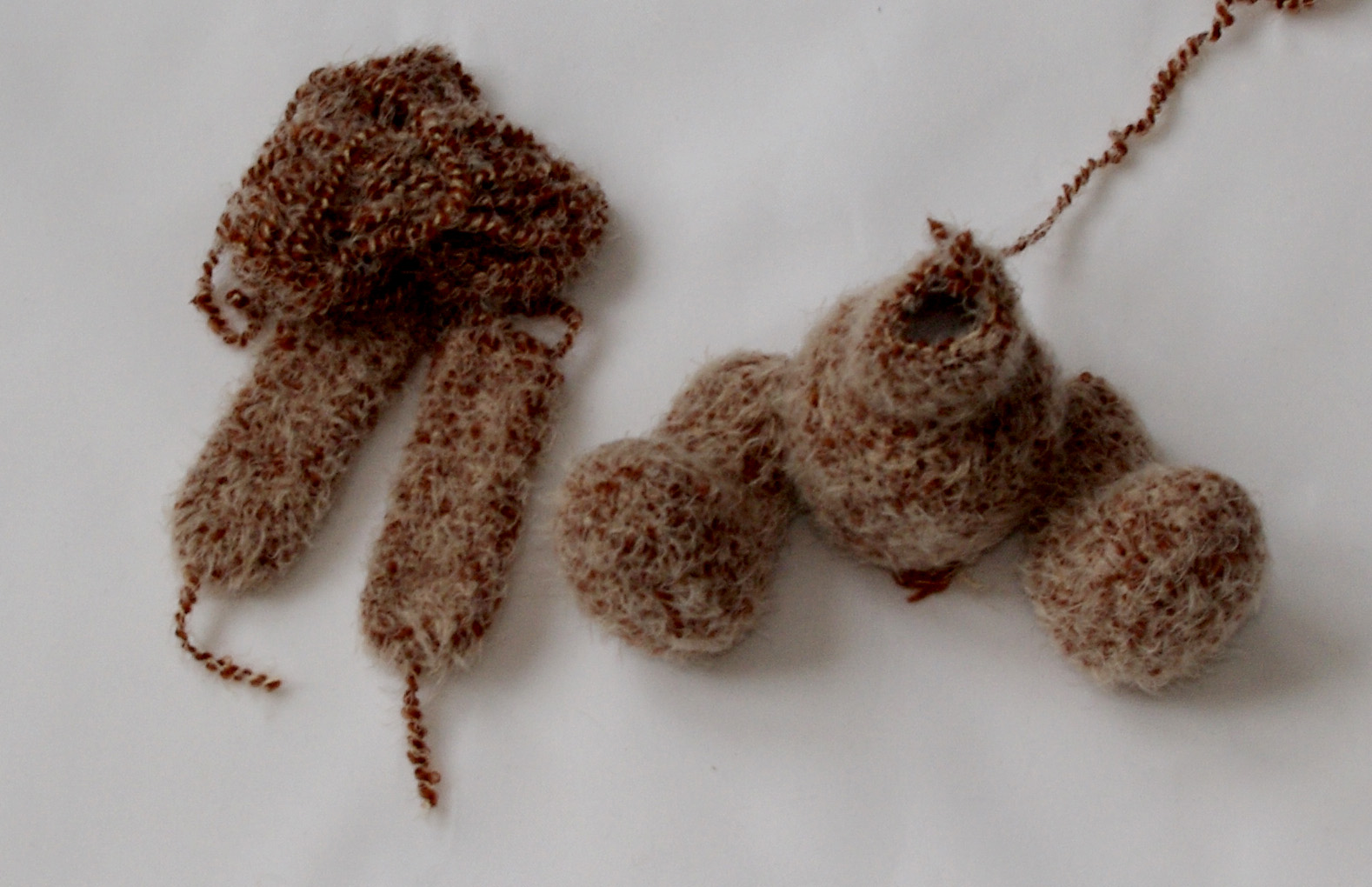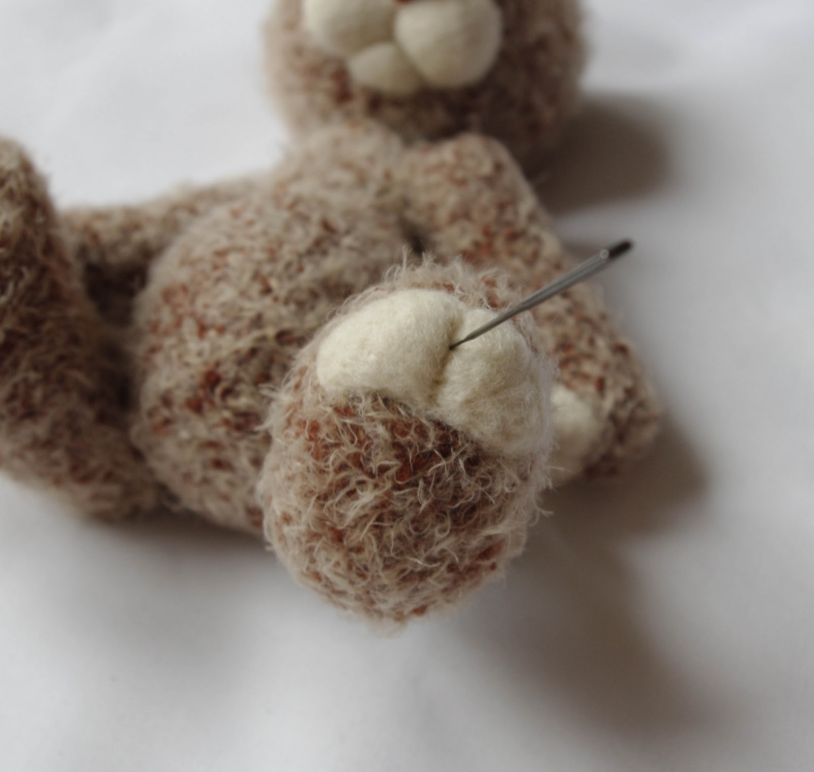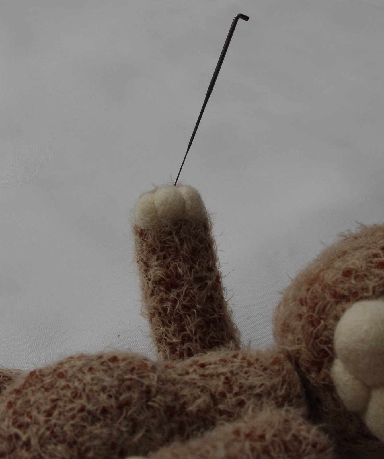 получились пальчики. Отрываем еще кусочек шерсти и формируем стопу