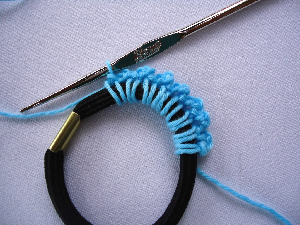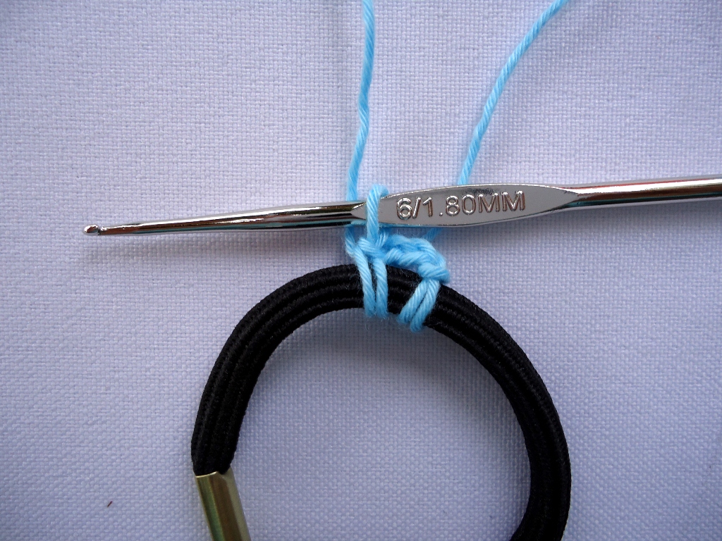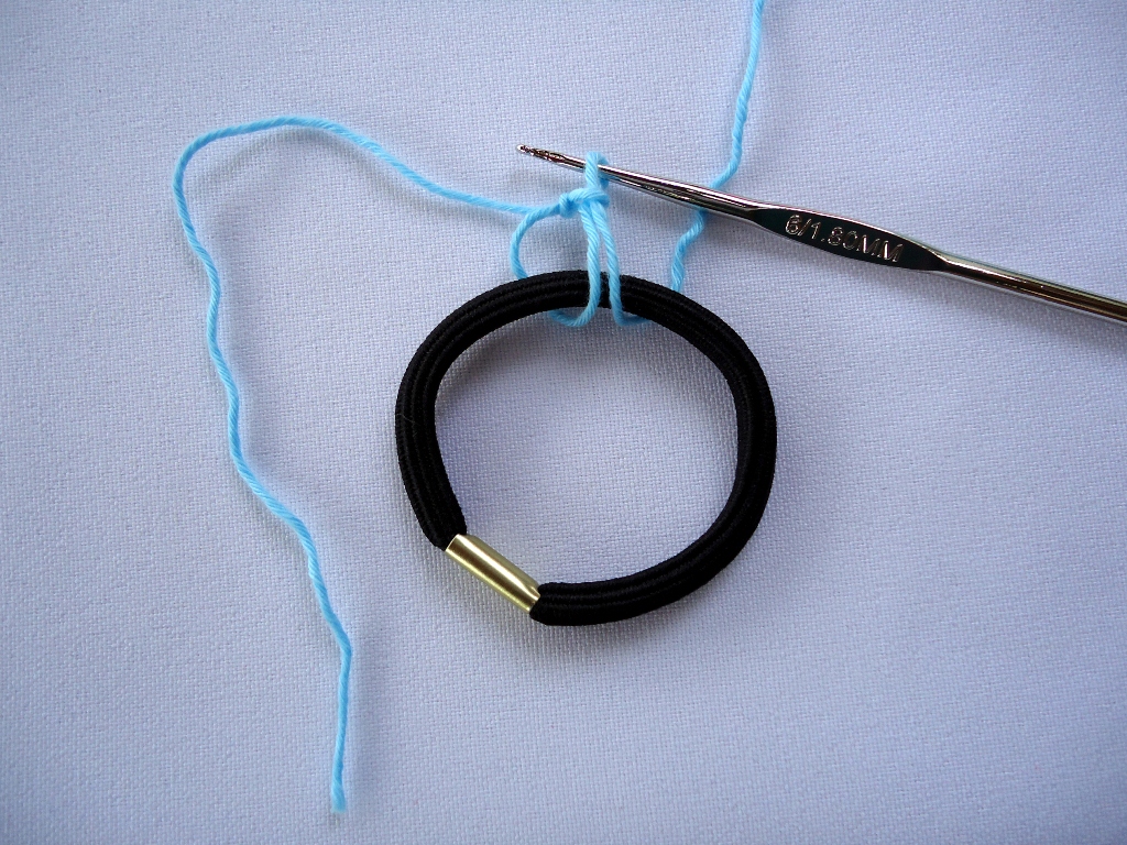 Что вам нужно это: хлопковые нити, вязальный крючок и резинка для волос