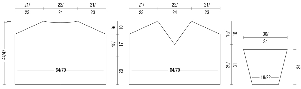 Для скосов с обеих сторон в каждом 4-м ряду прибавить 16 x 1 п. = 80 (90) п. Прибавленные петли включить в узор.
