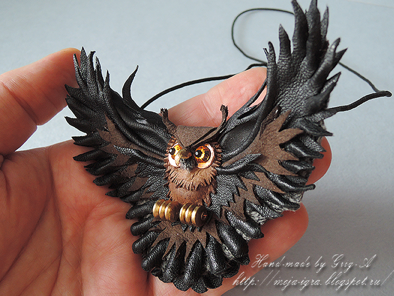 Вот он - филин-handmade - совсем не огромный, но хищный, висит на шнурке, предназначенный для подарка дочери на весенний женский праздник!