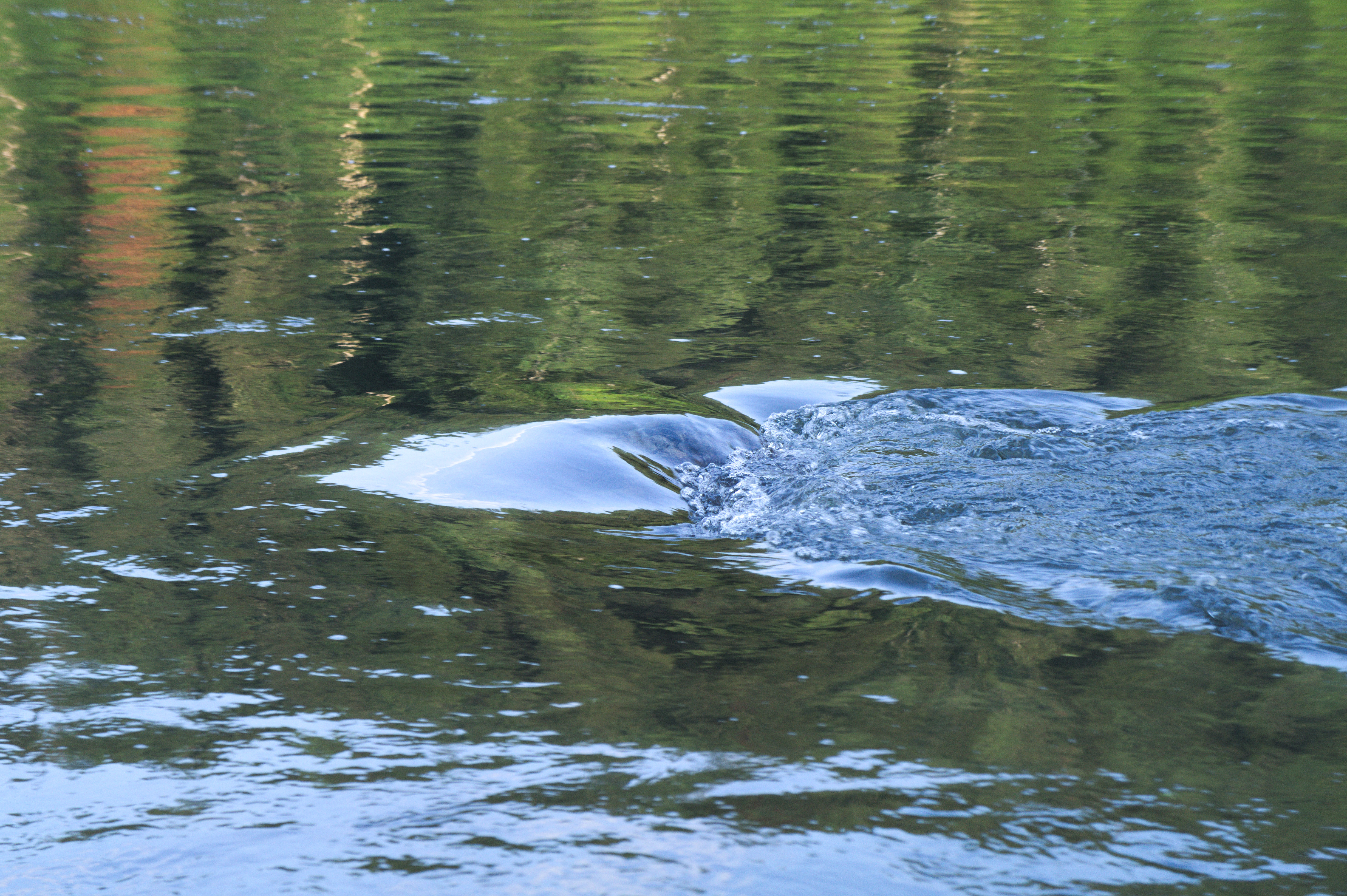 Сам отправляюсь на разведку. Вода прохладная, но после жаркого дня это только приятно. На дне вот такая обкатанная галька, идти совсем неплохо.