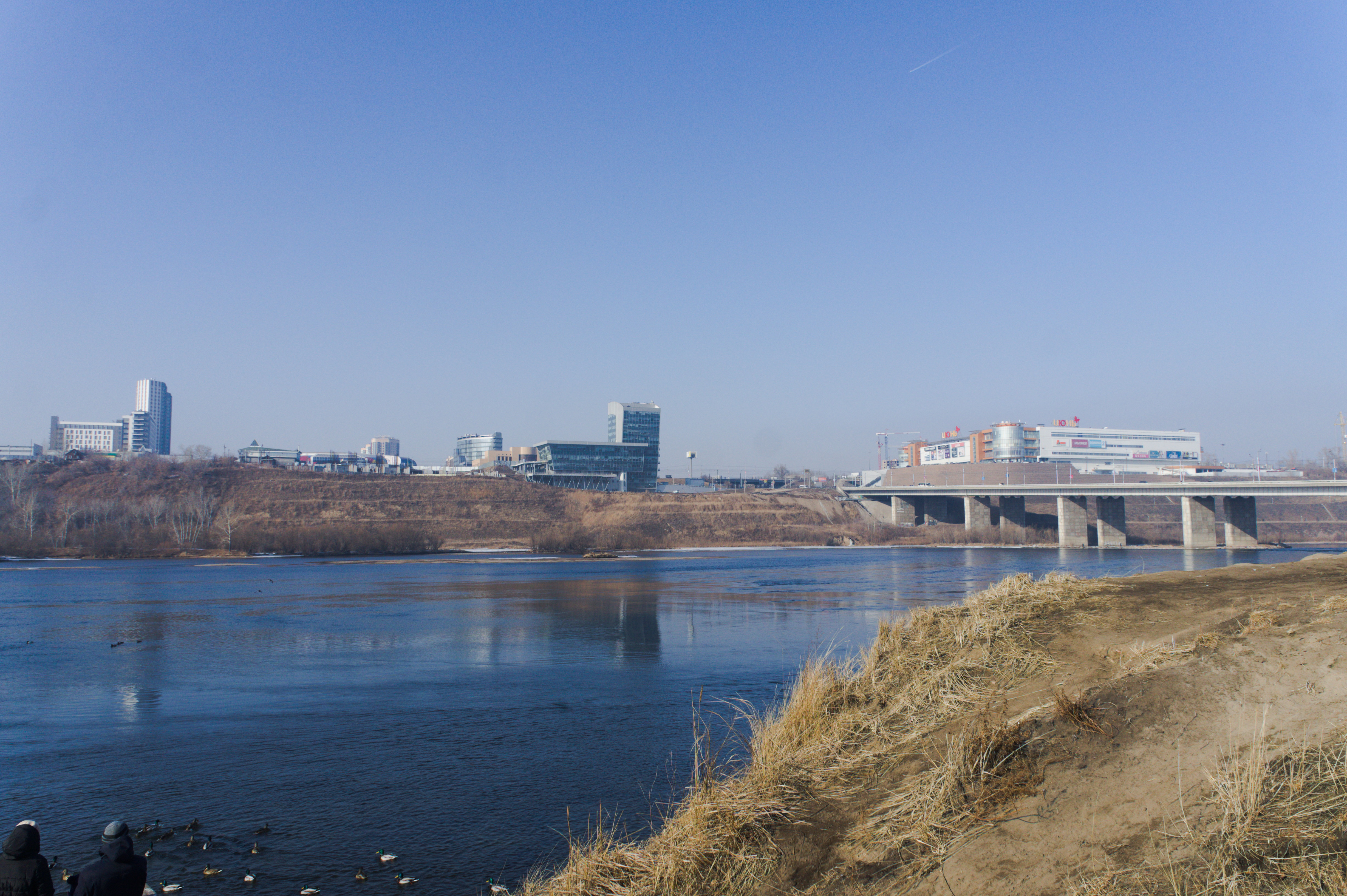 Вот, на том берегу, объект Универсиады, «Кристалл арена», на которой уже идут соревнования по хоккею.