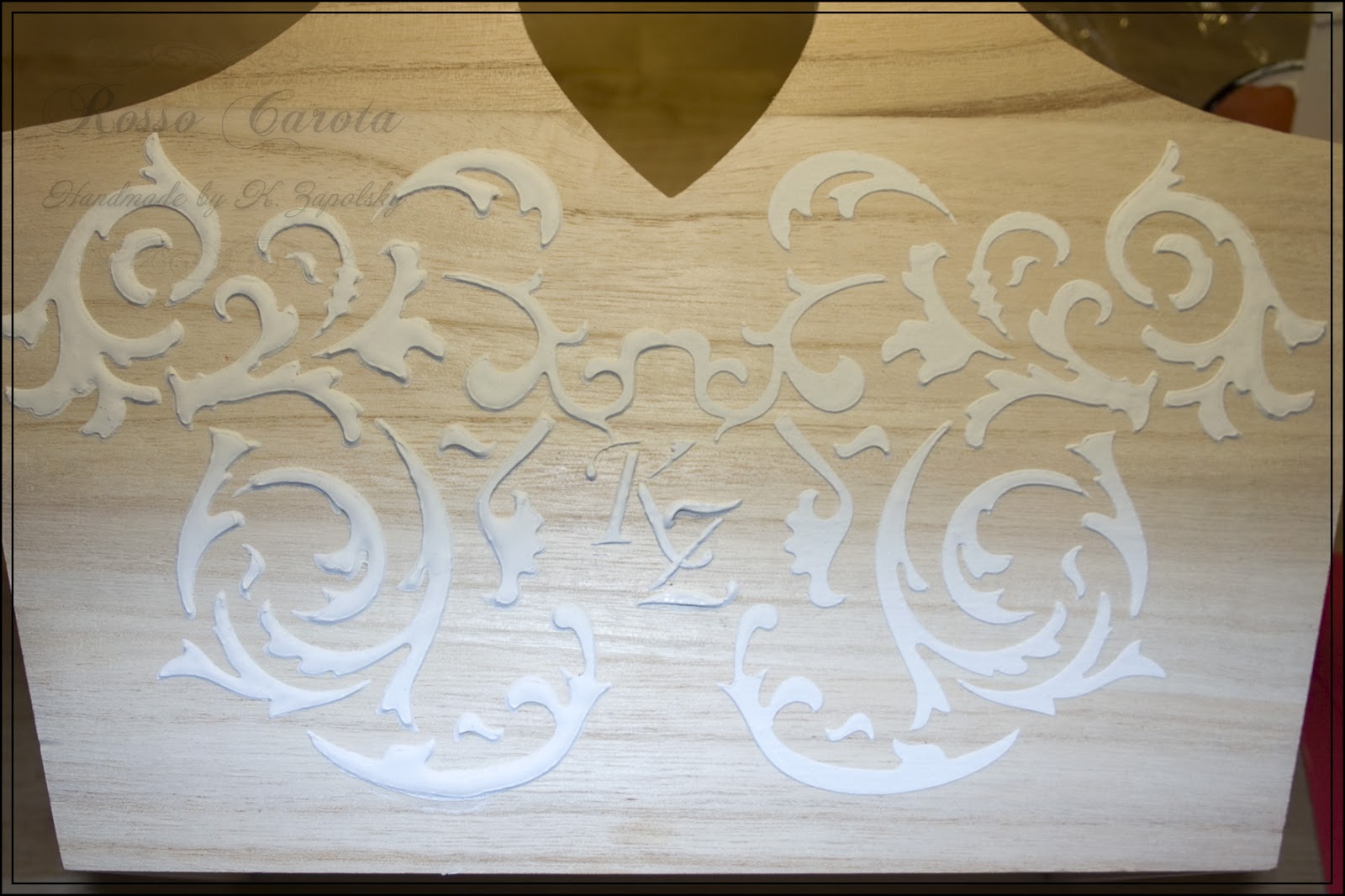 Накладываем второй трафарет, промазываем, снимаем, опять сушим (я честно ставила лукошко под вентилятор и занималась домашними делами).