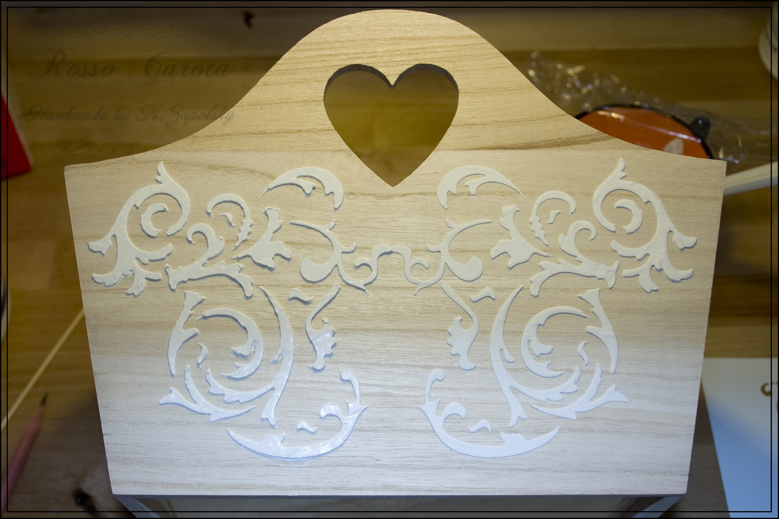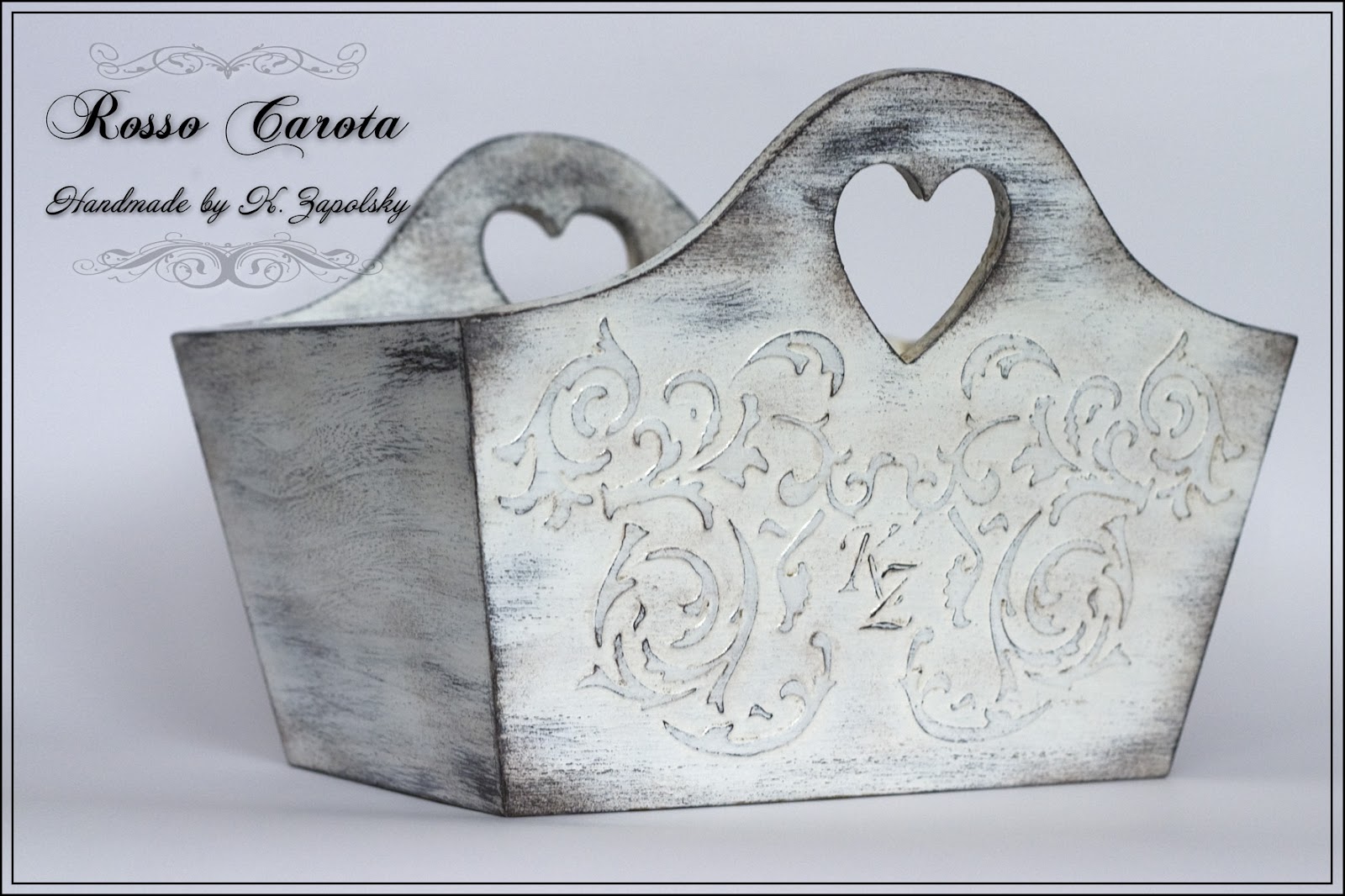 Лукошко зашкурено и готово к издевательствам, трафареты подобраны, делаем смесь для об`ёмного декорирования: грунтовка, ПВА и Plaster of Paris - до состояния очень густой сметаны.