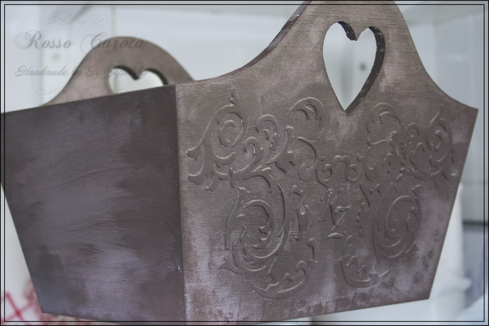Ждем еще полчаса, декорируем другую сторону, и оставляем в покое на пару-тройку часов. После этого я прошлась по рисунку утюжком для отшкуривания (без фанатизма, конечно), и закрасила все коричневым цветом.