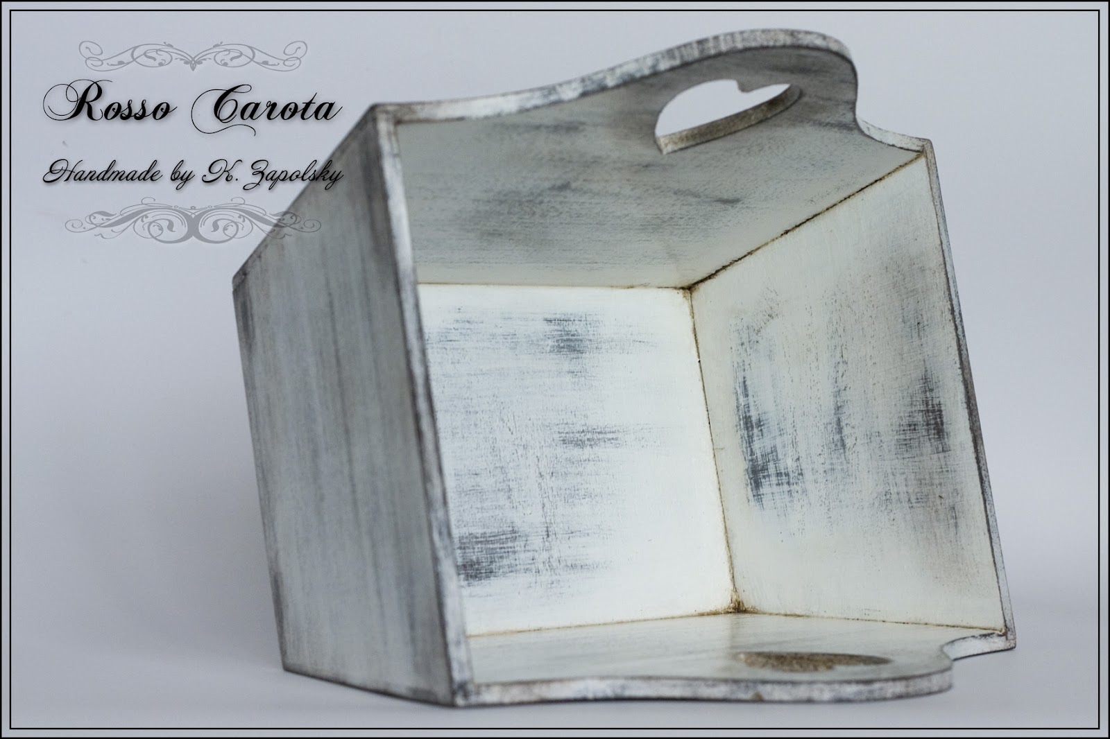 Теперь открою страшную тайну - я люблю пошарпаные вещи, но не люблю работать со свечкой. Не находим мы общего языка. Поэтому на этом этапе покрываем лукошко лаком. И после того, как лак высох, красим лукошко смесью акриловой краски и Plaster of Paris (пропорция 2 к 1). Мне, для удовлетворительной прокраски, понадобилось 3 слоя.