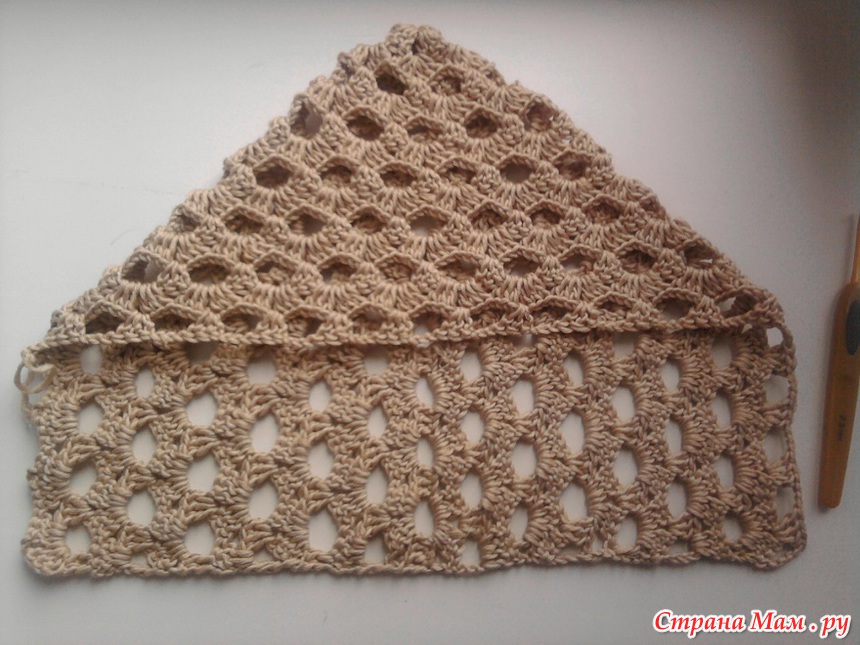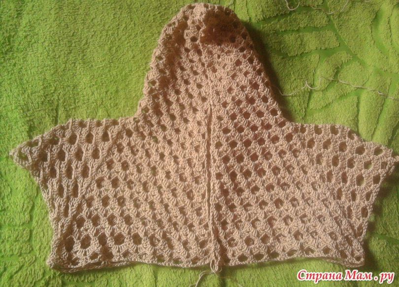 Длина моего капюшона 23 см, если у вас ниточки тоньше, то начальную цепочку придется набрать побольше. Этот совет касается тех, кто желает связать более глубокий капюшон.