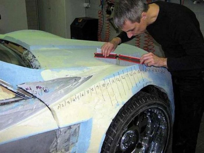 Главным материалом стала монтажная пена, которую мастер наносил на кузов слой за слоем, аккуратно выравнивая. Уже на первом этапе работы стало заметно, насколько изменился кузов по сравнению с первоначальным видом.