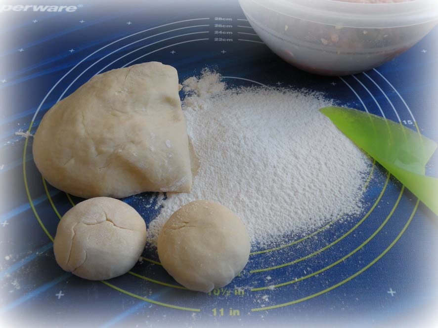 Замесить довольно крутое тесто ( но слабже, чем для пельменей)