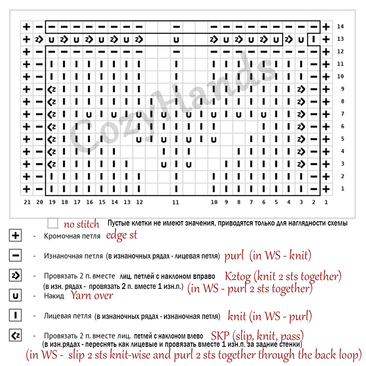 📕 Раппорт узора состоит из 18 петель и 14 рядов.