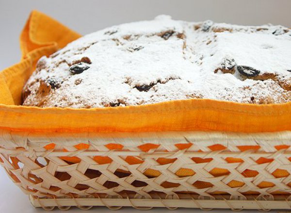 Ингредиенты: 850 г муки, 25 г свежих дрожжей, 180 г сливочного масла, 1 яйцо, 4 желтка, 180 г сахара, 150 г изюма без косточек, 70 г апельсиновых цукатов, 70 г лимонных цукатов, соль